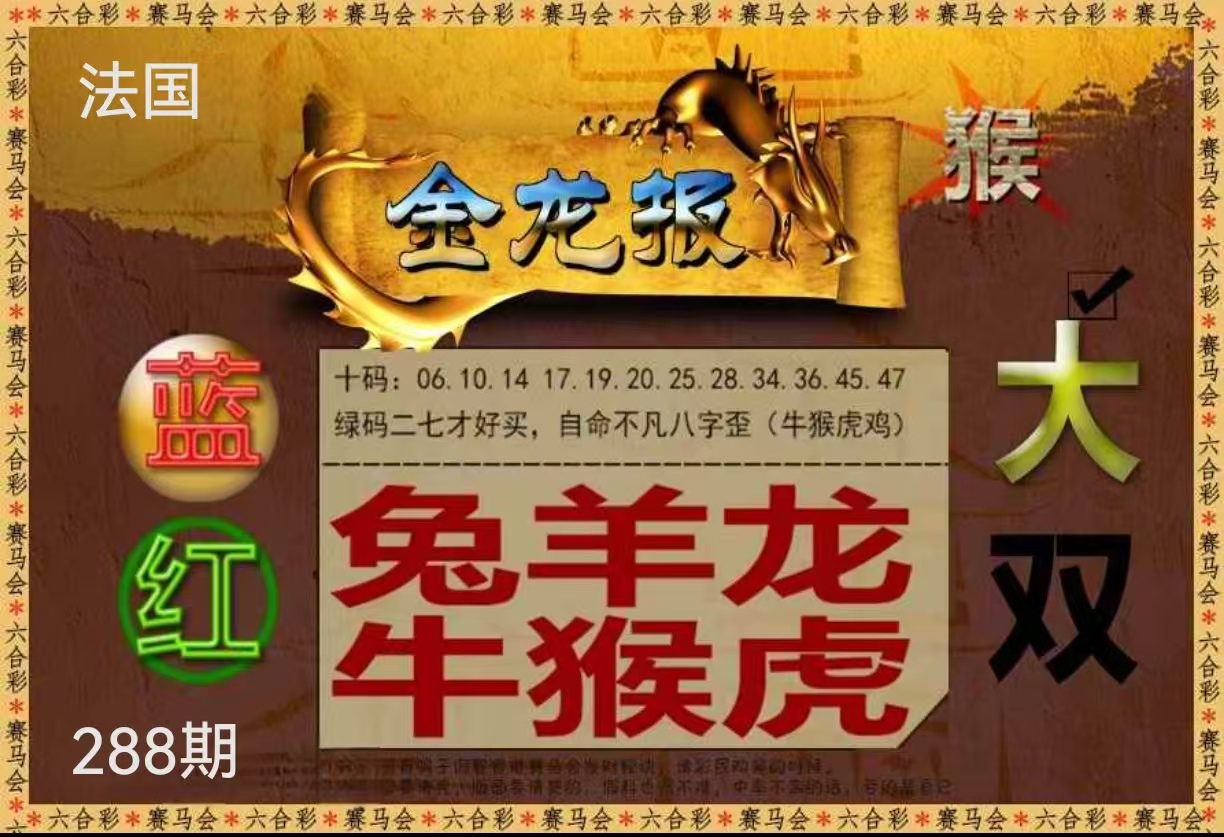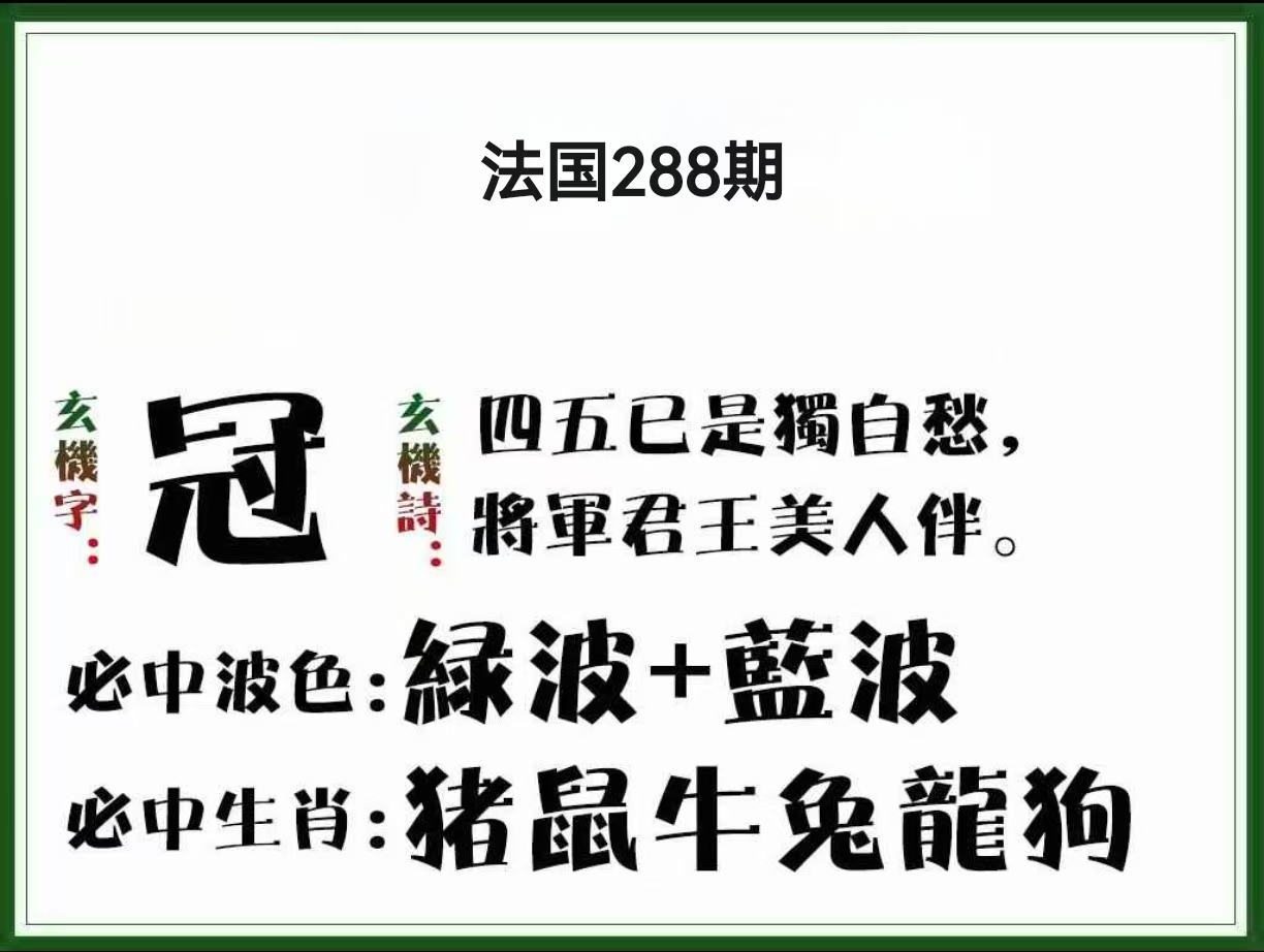 288期:天地+半波开(?00)中 天肖(牛猪猴龙马兔)+蓝双 |